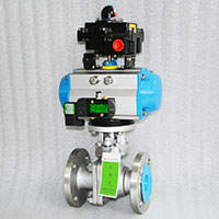 - 電動V型開關(guān)球閥 - 電動V型開關(guān)球閥閥芯上開有V型切口,與硬密封閥座相對轉(zhuǎn)動產(chǎn)生剪切力,可將限位切斷,防止卡死。具有流通能力大,調(diào)節(jié)精度高,可調(diào)比大,密封性能好等特點。特別適用于泥漿和含有纖維性介質(zhì),以及含有微小固體懸浮物介質(zhì)的調(diào)節(jié)。